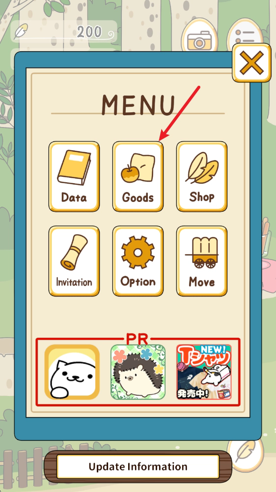5、点击右上角的此单,在这里会有着各种功能,例如存放物品的GOODS。