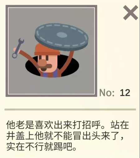 下水道伙计是固定的障碍物,伙计出现后井盖会掀开持续3秒的时间,但是过了这个时间后就得再等3-5秒才会重新冒出来,阻止他的方式需要一点小技巧,最好是争取他第一次出来的时候攻击他,如果没有在第一时间攻击他,那么就只能一直站在井盖上面了,因为按照第二次冒出的时间来算老豆基本已经走到井盖处了,只要站在那里就可以阻止他掀井盖,但是也大大的限制了主角的行动。