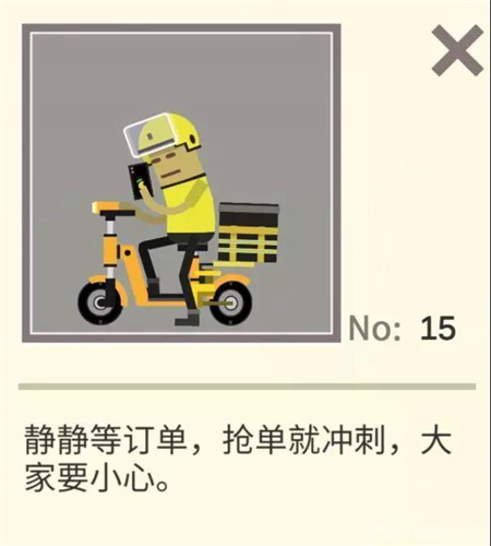 外卖哥有两种行动方式,一种是直接在路上移动。另一种是在路边等待,突然移动。外卖哥的移动速度比车仔还要快,很难及时躲避。所以要注意如果有外卖哥停在路边就要站在老豆身边防卫了,因为突然闯出来的话会反应不及。当路边的外卖哥闯出来的时候头顶的头盔会闪亮几下,这是唯一的细节提示,只要留意这个细节就能提前做好准备了。
