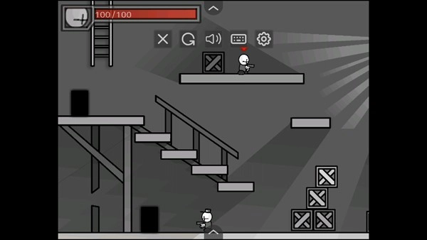 1、这是一款横版射击游戏,点击play按钮就能开启游戏。