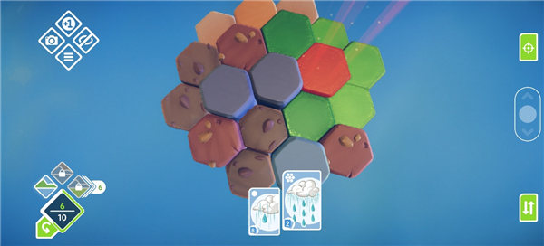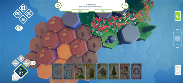 5、之后达到和谐点获得卡牌,我们就可以放置树木、动物等内容在地图中(放置3个相同内容可以合成一个生态)。