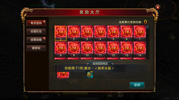 3、奖励大厅:玩家在奖励大厅可以领取每日签到、在线、资源下载礼包,领取充值红包等奖励。