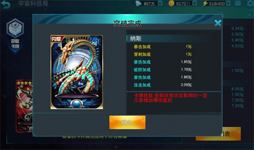 说完卡牌突破就必须要说一下卡牌属性了,在游戏中卡牌属性主要分为三类,分别是攻击属性,防御属性,和特殊属性,攻击属性主要就是一些攻击加成,暴击加成等、防御属性,主要就是生命加成与防御加成等,特殊属性则是非常特殊的,最主要的就是冷却加成,有了这个小伙伴们的技能就能更加快速的释放技能了!