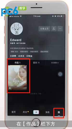 首先打开抖音短视频App,点击【我】页面,在【作品】栏下方找到你要删除的短视频,点击进入;