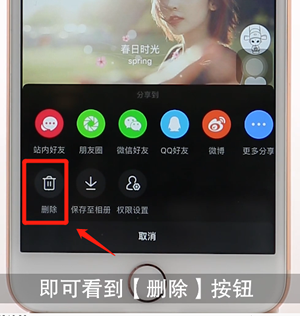 即可看到【删除】按钮,点击【删除】就能把作品删除了。