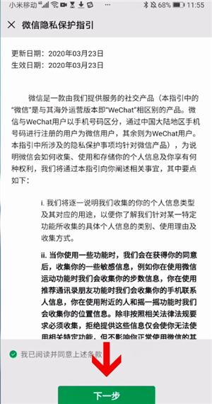 勾选更换须知协议点击下一步,再勾选保护指引条款点击下一步,