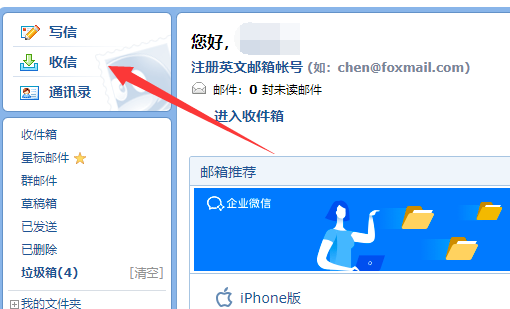 1、首先登录qq,然后在qq顶端点击“邮箱”图标。