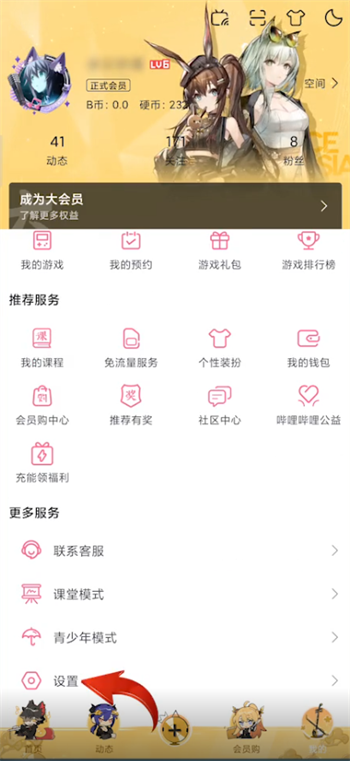 2.在B站主页面中点击右下方的我的选项,随后拉动个人页面至底部选择设置。