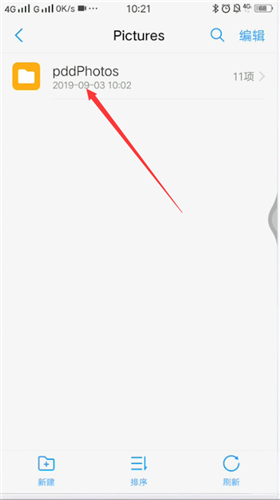 打开手机文件管理,点击内部存储,点击Android-data-com.xunmeng.pinduoduo-files--pictures文件夹,