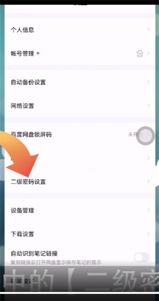 3.点击设置界面中的【二级密码设置】。