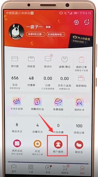 接着选择“客户服务”
