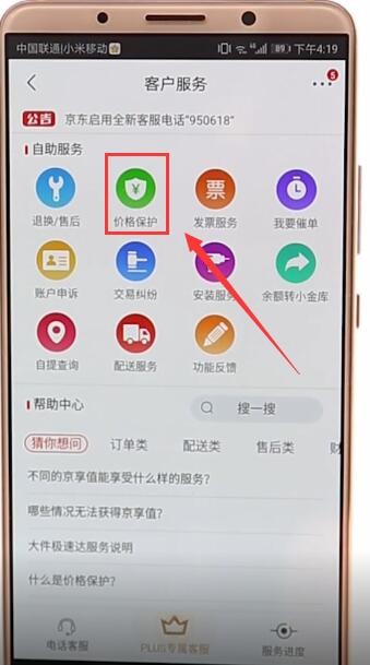 然后在进入页面后,选择“价格保护”