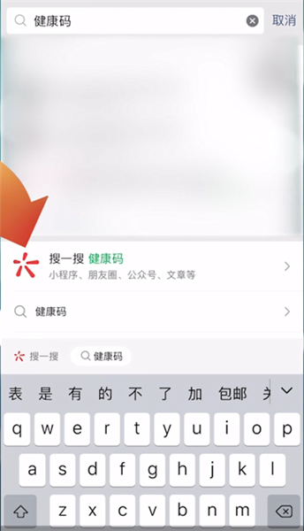 第二步:这时点击搜索选项,再点击搜一搜健康码,