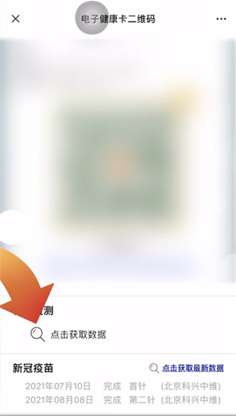 第四步:在健康码页面点击获取数据选项即可查看自己的核算检测报告了。