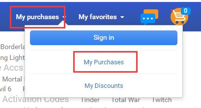 2、进入后,在“your purchases”下就可以看到你的购买的游戏激活码了。