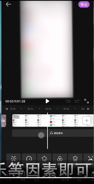 3、然后进行画面剪辑音乐等因素即可导出视频。