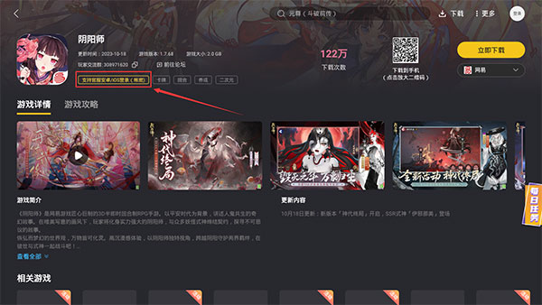 1、首先我们要知道,不是所有的游戏都支持ios账号登录的,只有在详情界面标注了【支持ios登录】字样的游戏才可以,比如阴阳师。