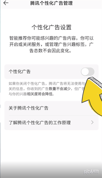 选择【个性化广告】,滑动按钮关闭广告就可以了。