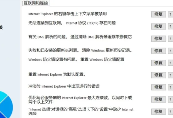 4、在“互联网与连接”中,可修复网络连接问题、防火墙配置和浏览器运行故障等问题。
