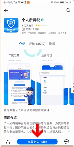 在搜索栏输入个人所得税再点击搜索,选择需要下载的app,然后点击安装即可成功进行下载安装。
