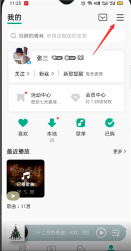打开手机qq音乐,点击我的,