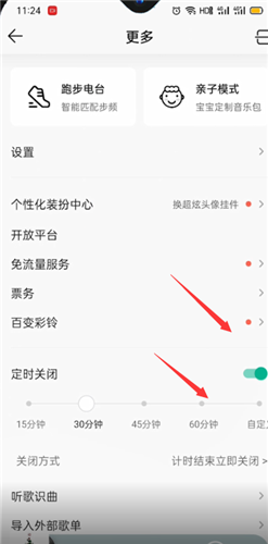在定时关闭的右侧滑动滑块,在下面选择定时关闭的名单,选择要定时关闭的时间,