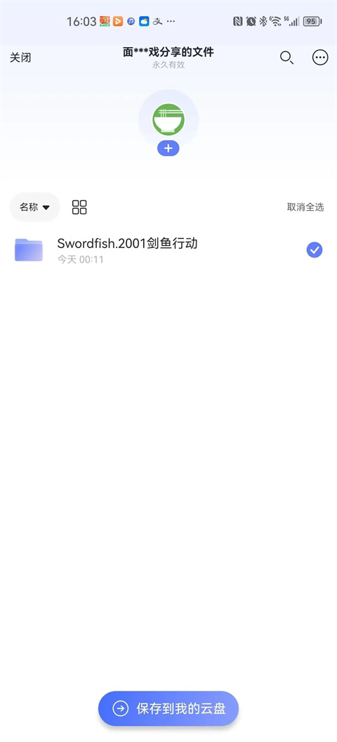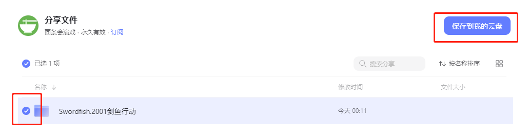 ③ 在你要观看的电影前面打勾,点右边的“保存到我的云盘”