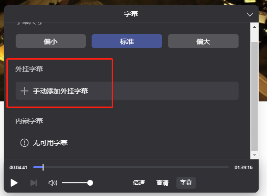 点击 外挂字幕-手动添加外挂字幕