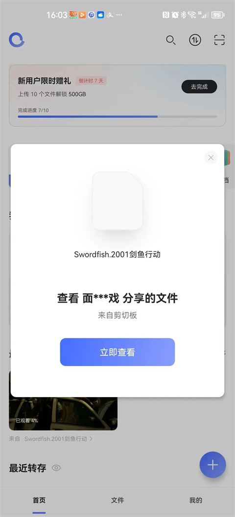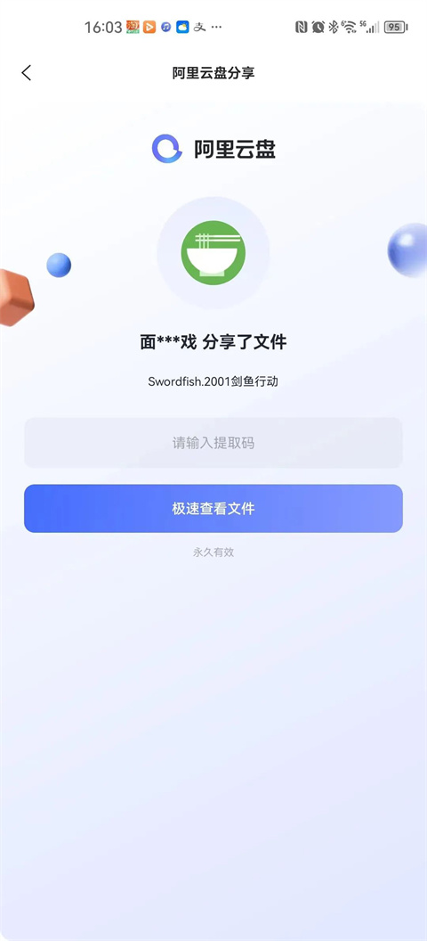 复制分享的链接,打开“阿里云盘”APP,软件会自动识别出复制的链接