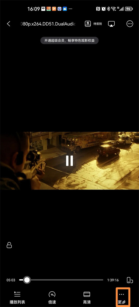 打开影片,点击右下角的“更多”按钮