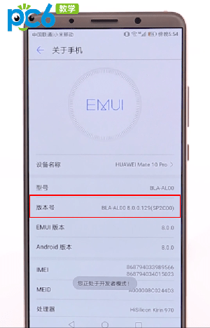 第三步:点击5到7次版本号,就会进入开发者模式;