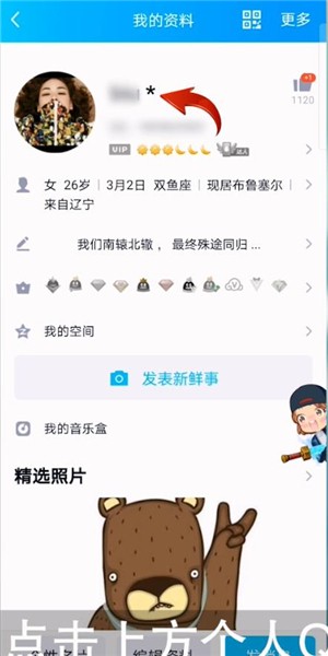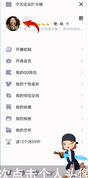 接下来点击上方个人QQ昵称,