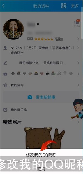 点击【修改我的QQ昵称】选项,输入要修改的名称,点击【完成】即可。