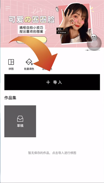1.如果想要使用醒图消除多余的内容的话,首先打开醒图app,在首页选择“+导入”功能,