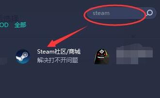 2、首先下载安装uu加速器,在右上角搜索并打开“steam社区/商城”