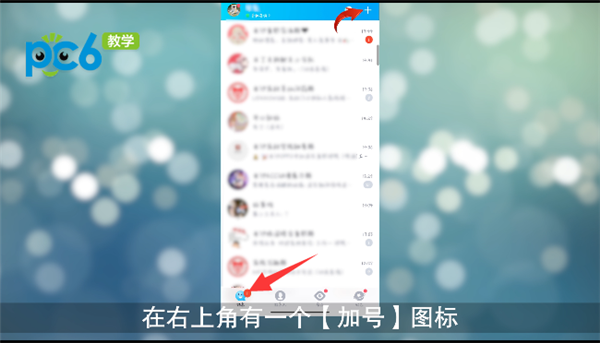 打开qq的消息一栏,在右上角有一个【加号】图标;