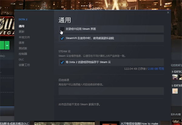 3.若是依然在运行一些游戏时存在问题,那么在库存中找到特定的游戏,再对相对应的游戏点击鼠标右键,随后下拉选属性选项。在属性选项的通用中勾选在游戏中启用steam页面即可对特定的游戏进行设置。