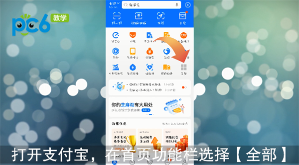 打开支付宝,在首页功能栏选择【全部】;