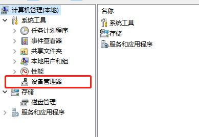 这里右键“此电脑”选择“管理”,点击“设备管理器”