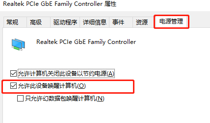4、打开后点击“电源管理”,点击“允许此设备唤醒计算机”