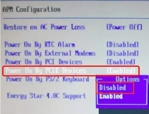 在 Power management 设置窗口中,将“Wake up on LAN”项设置为“Enabled ”