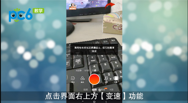 进入【视频拍摄】页面,点击界面右上方【变速】功能;