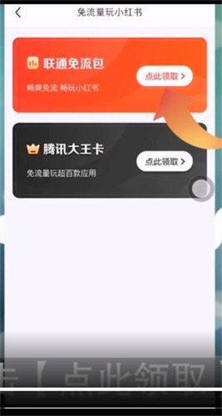 3.界面左侧弹出浮层框后,点击框中的【免流量】再点击【点此领取】即可。