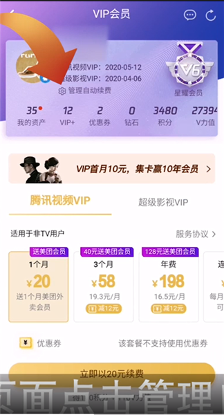 第二步:然后点击进入“VIP会员”,在跳出的新页面点击管理自动续费选项,