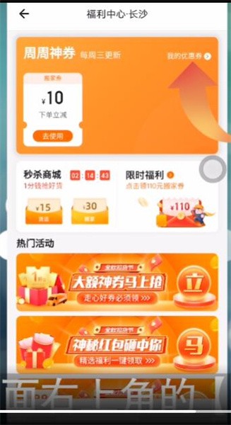 3.点击福利界面右上角的【我的优惠券】即可查看可使用的优惠券。