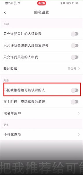 4、找到不把我推荐给可能认识的人,点击旁边的按钮即可。