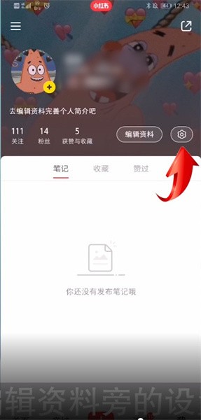 2、在我的页面右上方,点击编辑资料旁的设置图标;