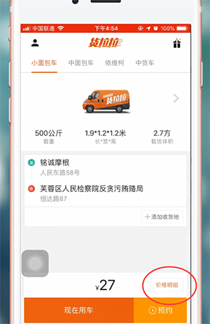 首先打开货拉拉app,任意选择发货地址以及收货地址后可以看到右下方有个【价格明细】