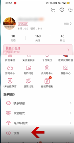 打开手机哔哩哔哩,点击我的或者左上角自己的头像,往下滑,点击设置,