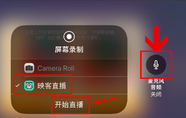 勾选【映客直播】,再将【麦克风】打开,点击【开始直播】;